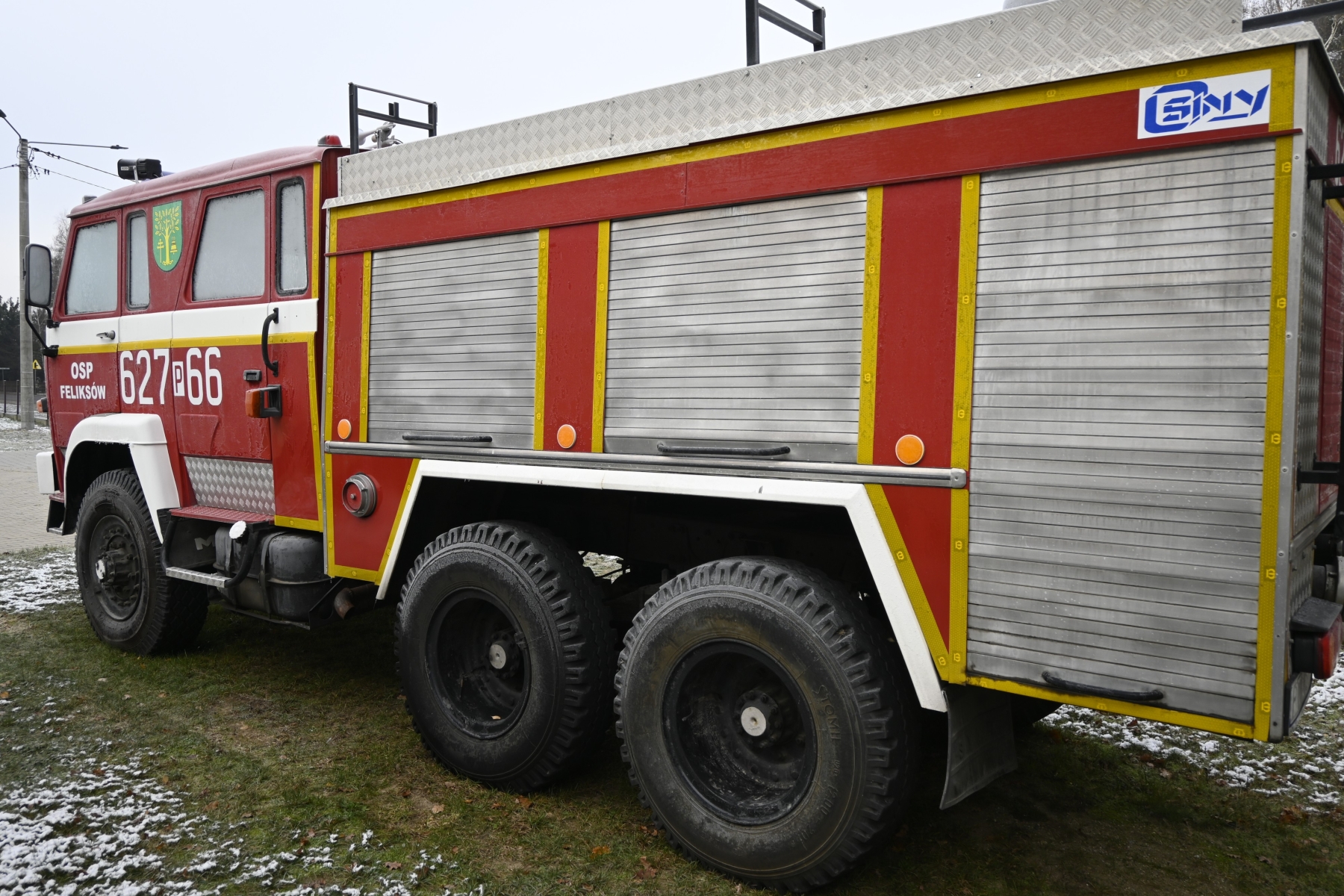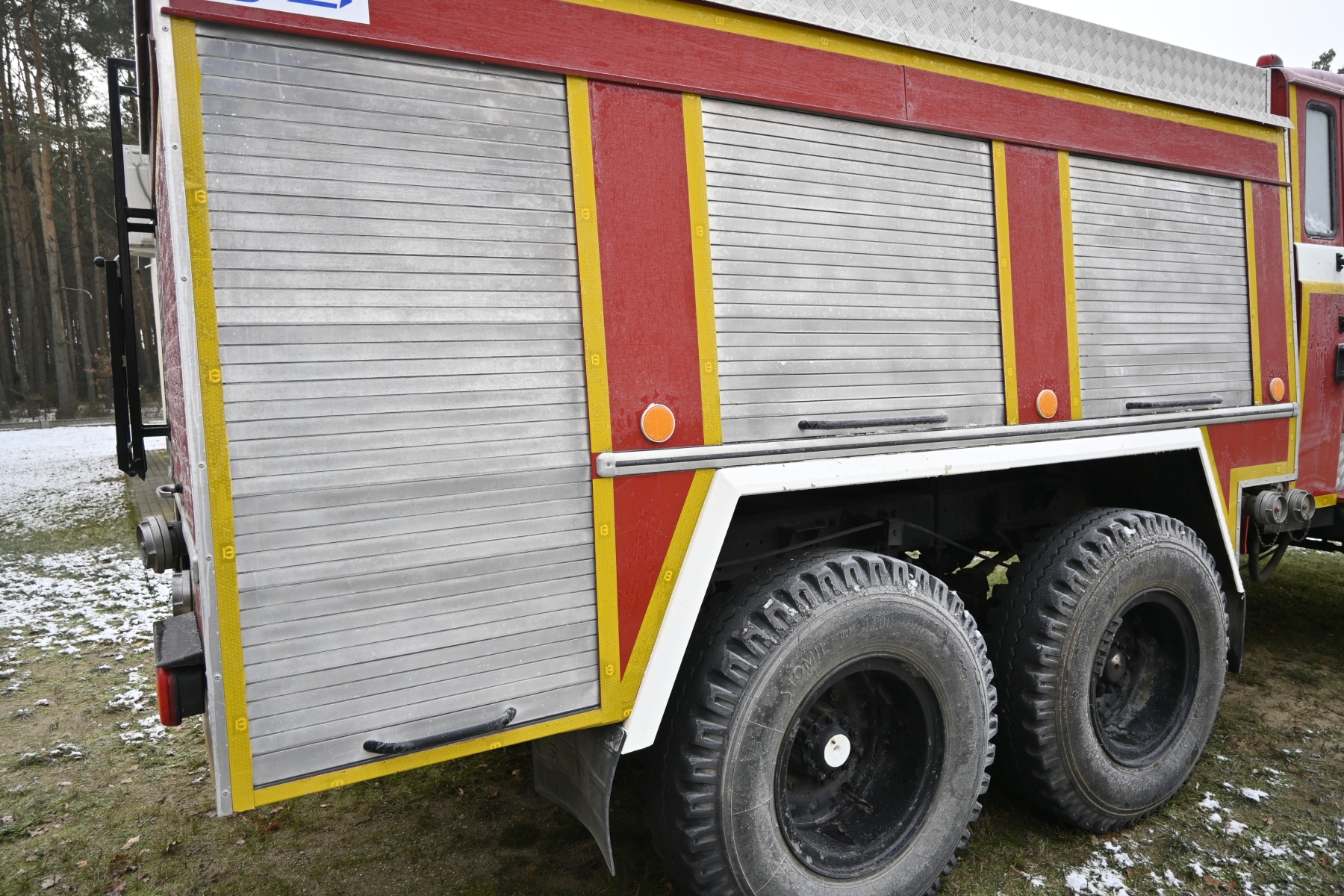 Wyposażenie pojazdu: standardowe dla samochodu pożarniczego specjalnego marki Star A 266 w wersji uterenowionej 6x6;